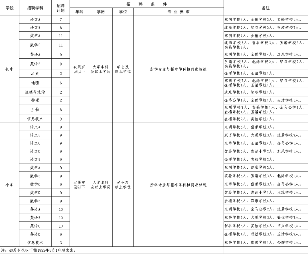 (一)具有中华人民共和国国籍,拥护中国共产党领导和社会主义制度,遵守宪法和法律;(四)普通话水平达到二级乙等及以上(语文学科须达到二级甲等及以上);(五)符合岗位要求的年龄、学历、专业等资格条件(详见附件)。下列人员不得报考:现役军人;在读全日制高校非应届毕业生(不能用已取得的学历学位作为条件报考);因犯罪受过刑事处罚的人员和被开除公职的人员;被开除中国共产党党籍的人员;尚未解除党纪政务处分的人员;涉嫌违纪违法正在接受有关机关审查尚未作出结论的人员;在各级公务员、事业单位招考(聘)中被认定有舞弊等严重违反纪律行为的人员;被依法列为失信联合惩戒对象的人员;按规定其他不能报考的情形。(一)报名及缴费