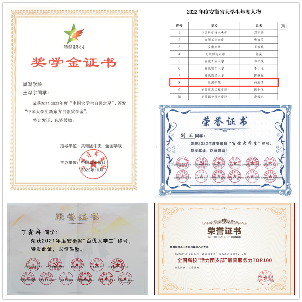 岁序更替,华章日新。巢湖学院共青团在学校党委和上级团组织的坚强领导下,高举习近平新时代中国特色社会主义思想伟大旗帜,深入学习贯彻党的二十大精神和团的十九大精神,坚持立德树人根本任务,全面服务学校“两个建成”目标任务和学生成长成才需求,积极融入学校“三全育人”和“大思政”工作格局,以第二课堂成绩单制度为牵引,充分发挥共青团组织育人、实践育人、文化育人、网络育人等优势,服务学生德智体美劳全面发展。近五年,学校共青团先后获评大学生暑期“三下乡”社会实践活动全国优秀单位、全国大学生艺术展演优秀组织奖、安徽省五四红旗团委、安徽省直属高校共青团考核优秀等奖项荣誉。