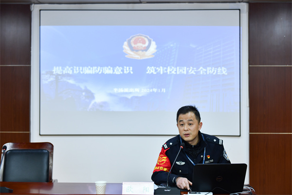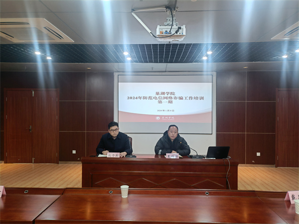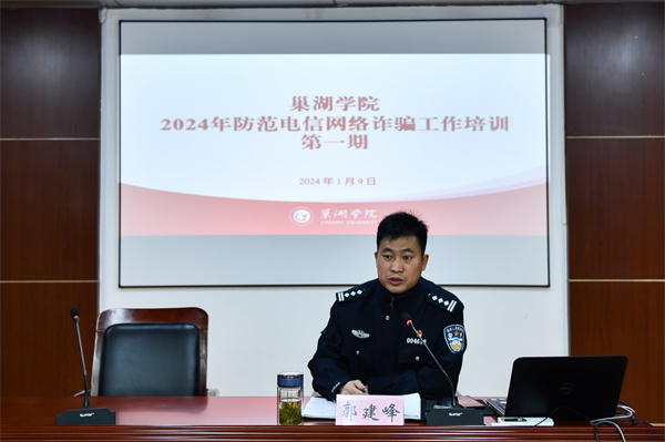 为有效压降涉校电诈警情,进一步提升师生员工反诈防骗能力,增强防范意识,共筑校园安全屏障。1月9日下午,在学校图书馆10楼第二会议室举办2024年第一期防范电信网络诈骗工作培训。特邀合肥市公安局治安支队党委委员、半汤派出所所长郭建峰和半汤派出所副所长欧阳莅临培训现场,学工部、保卫部、各学院副书记及全体辅导员参加培训,培训由党委保卫部部长赵子翔主持。