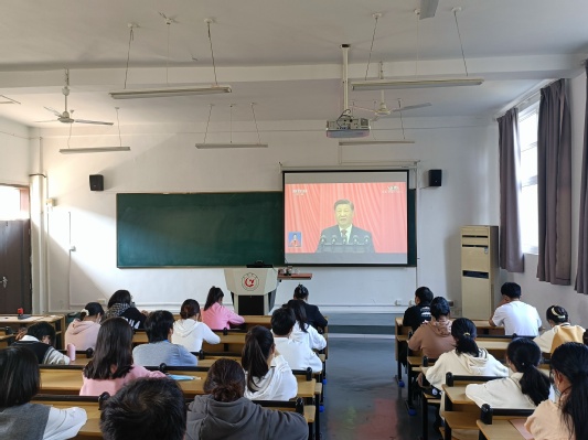 学生党支部书记、辅导员邓书音认为,“这是中华民族伟大复兴的历史征程上又一个特殊而重要的时刻。作为一名中国共产党员深刻感受到祖国的强大,伟大思想引领伟大征程,感悟伟大变革背后的伟大精神。”