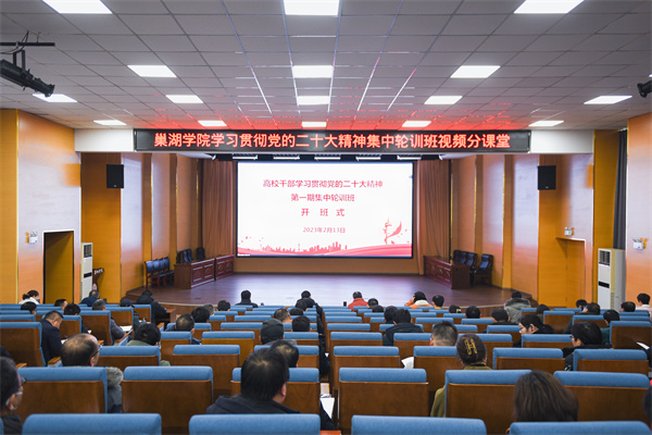 根据《中共安徽省委教育工委关于举办高校干部学习贯彻党的二十大精神集中轮训班的通知》精神,为实现学校中层管理人员和科级人员学习贯彻党的二十大精神集中轮训全覆盖,2023年2月13日至2月24日,巢湖学院在求实楼举办中层管理人员、科级人员学习贯彻党的二十大精神集中轮训班。本次培训班采取同步视频分课堂的方式,课程设置与省委教育工委线下培训班同步。