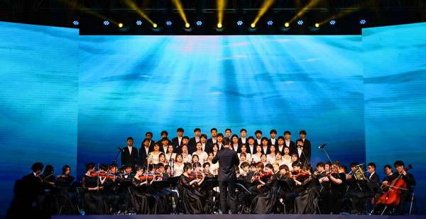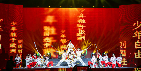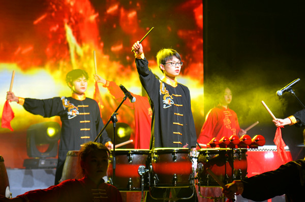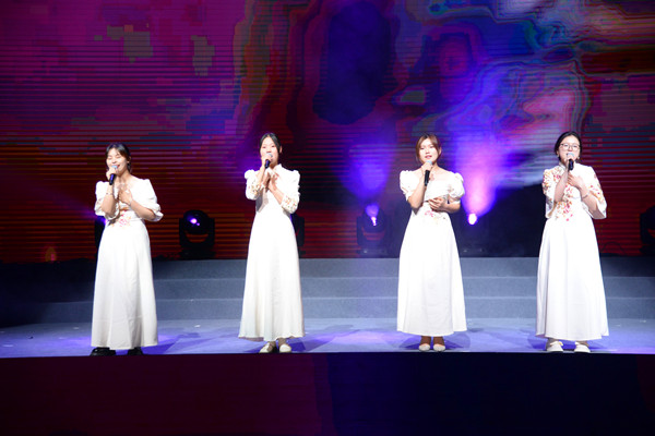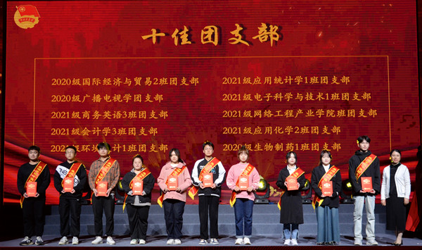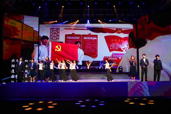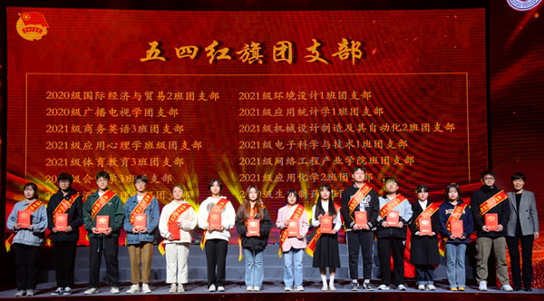 主题晚会分为“觉醒·担当”“青春·奋斗”“强国·有我”三个篇章,并对共青团工作考核先进单位、五四红旗团支部、十佳大学生、十佳青年志愿者、十佳自强之星、优秀共青团员、优秀共青团干部等11类先进集体和个人进行颁奖表彰。一场令人期盼已久的主题晚会在一首雄壮激烈的鼓乐节目《新编龙腾虎跃》中正式开启,朗诵《风范与家产》、群舞《活着1937》、歌曲联唱《映山红》《不忘初心》《万疆》《我爱你,中国》、独唱《裹着心的光》、朗诵《你们•我们》、四重唱《如愿》、街舞与武术表演《武动青春》、歌伴舞《有我》、视频作品《理想·未来》、大合唱与器乐合奏《万泉河水清又清》《我和我的祖国》精彩纷呈,表演或深沉婉转或激昂澎湃,再现了一代又一代青年与党同心、跟党奋斗,在革命、建设和改革的历史进程中,激扬青春,建功立业,开拓人生,用生命和热血书写凌云志、谱写凯旋歌的动人场景。晚会将艺术味、思政味、青年味、时代味完美融合,发出了“请党放心 强国有我”的青春誓言,奏出了“艰苦奋斗强我中华”的青春最强音,使线上线下一万多名师生观众为之动容,在领略艺术之美中深受精神洗礼。浓浓的爱党爱国爱团情怀洋溢在田径场上,表达在线上留言区里,曲终舞散,很多人还久久不愿离去,一起唱和晚会歌曲,回味晚会意蕴。
