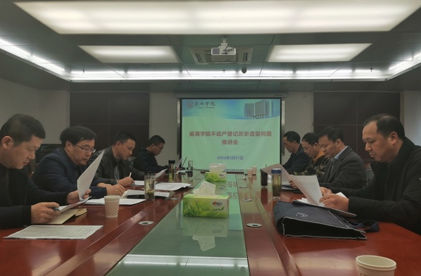 为推进解决学校不动产登记历史遗留问题,3月21日下午,巢湖市不动产登记(交易)中心主任王伟平率队来校调研并参加巢湖学院解决不动产登记历史遗留问题推进会,基建办、国资处、发规处相关人员参加推进会。