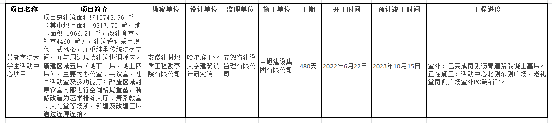 巢湖学院大学生活动中心项目进度通报(2023年6月12日)