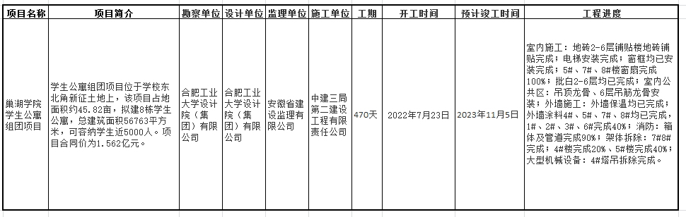 巢湖学院学生公寓组团项目进度通报(2023年6月19日)