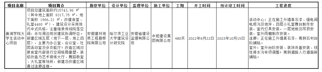 巢湖学院大学生活动中心项目进度通报(2023年7月10日)