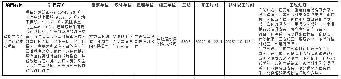 巢湖学院大学生活动中心项目进度通报(2023年7月24日)