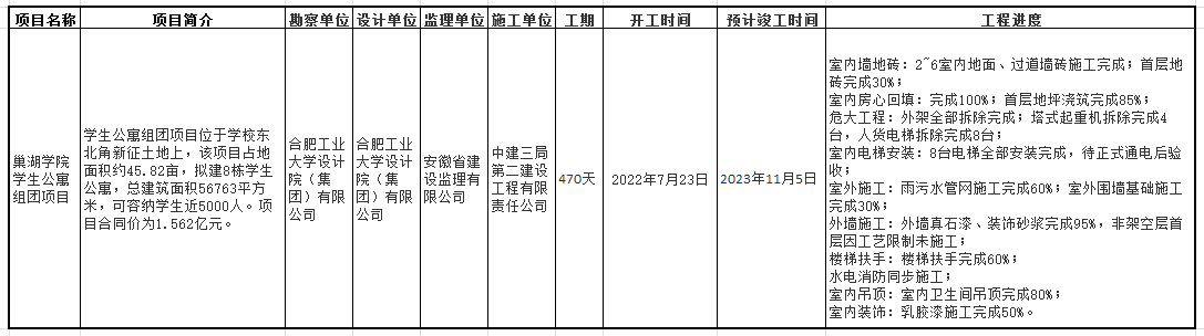 巢湖学院学生公寓组团项目进度通报(2023年8月21日)