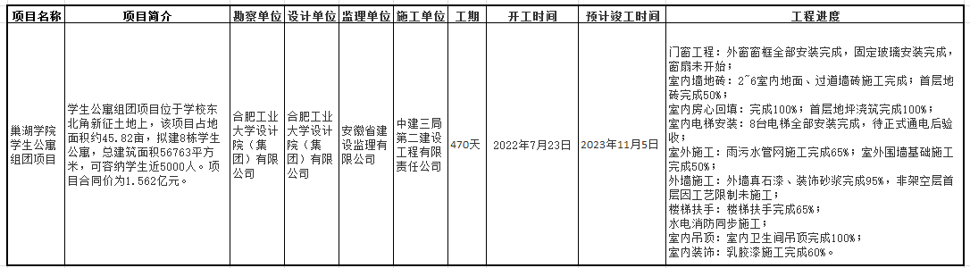 巢湖学院学生公寓组团项目进度通报(2023年8月28日)