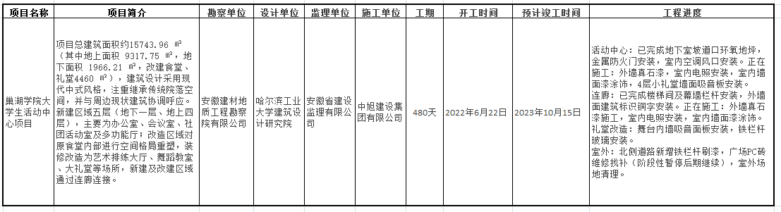 巢湖学院大学生活动中心项目进度通报(2023年8月28日)