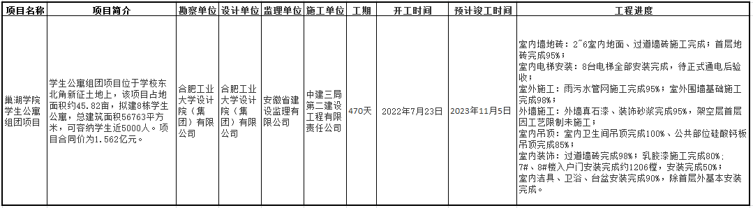 巢湖学院学生公寓组团项目进度通报(2023年9月25日)