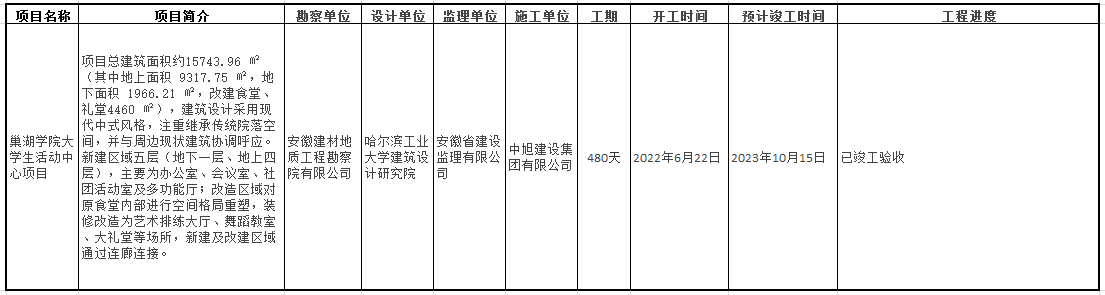 巢湖学院大学生活动中心项目进度通报(2024年1月30日)