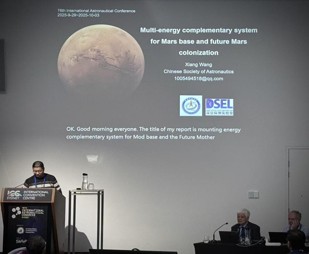 应大会邀请,我校教师汪翔在大会先进太空能源专业论坛上做《Multi-energy complementary system for Mars base and future Mars colonization》的学术报告,能源系统往往是航天任务的关键,该报告将能源学科的多能互补概念推广到地球以外,重点针对航天任务的皇冠——载人登火星任务的能源体系进行了全面分析,在核能因高成本、安全性方面限制不可能100%包办所有用能需求的情况下,综合火星轨道太阳能、火星表面太阳能、火星风能等一次能源,电能综合分配,火星原位资源利用中在火星当地进行火箭燃料的电化学、光化学生产,火星充电桩、火星车辆适宜的非核一般动力形式等,首次全面进行了包括火星原位资源利用在内的载人火星基地,以及车辆出行动力的综合用能分析,引发了参会专家的激烈讨论,并进行了深入交流。