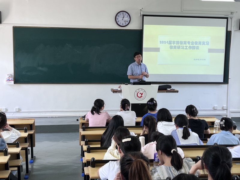 2023年9月6日,教师教育学院在明德楼东2阶梯教室召开2024届学前教育专业教育实习、教育研习工作布置会。教育系主任甘超、专业教师朱小泉、张平,辅导员曾鹏、以及学前教育专业20级本科、22级专升本全体学生参加了会议。会议由甘超主持。