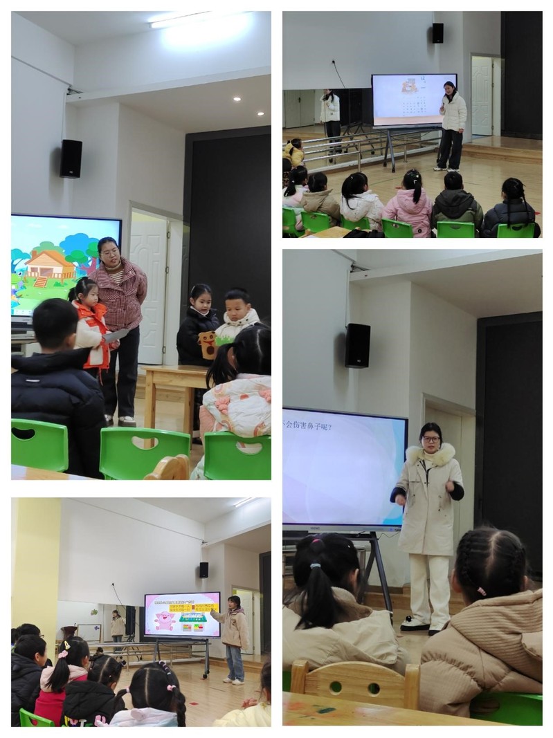 本次公开课经历了选题、教案设计、试讲、研讨等诸多环节,通过实习生和指导老师们的共同打磨,最终呈现出一节节生动有趣的教学活动,如小班的美术活动《小花被》、语言活动《下雪了》;中班的数学活动《今天星期几》、音乐活动《拍手唱歌笑呵呵》;大班的社会活动《我们身边的广告》、健康活动《鼻子的秘密》等。实习老师们在公开课教学活动中通过绘声绘色的故事、实物展示、互动游戏等多元化的方式,引导幼儿探索课堂的魅力,激发他们的好奇心和探索欲望。实习生们精心设计的课程内容和富有创新的教学方法也获得了在场教师的好评。