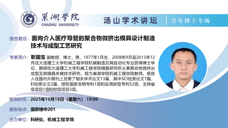 汤山学术讲坛青年博士专场第23讲:(10月18日:机械工程学院靳国宝博士讲座)