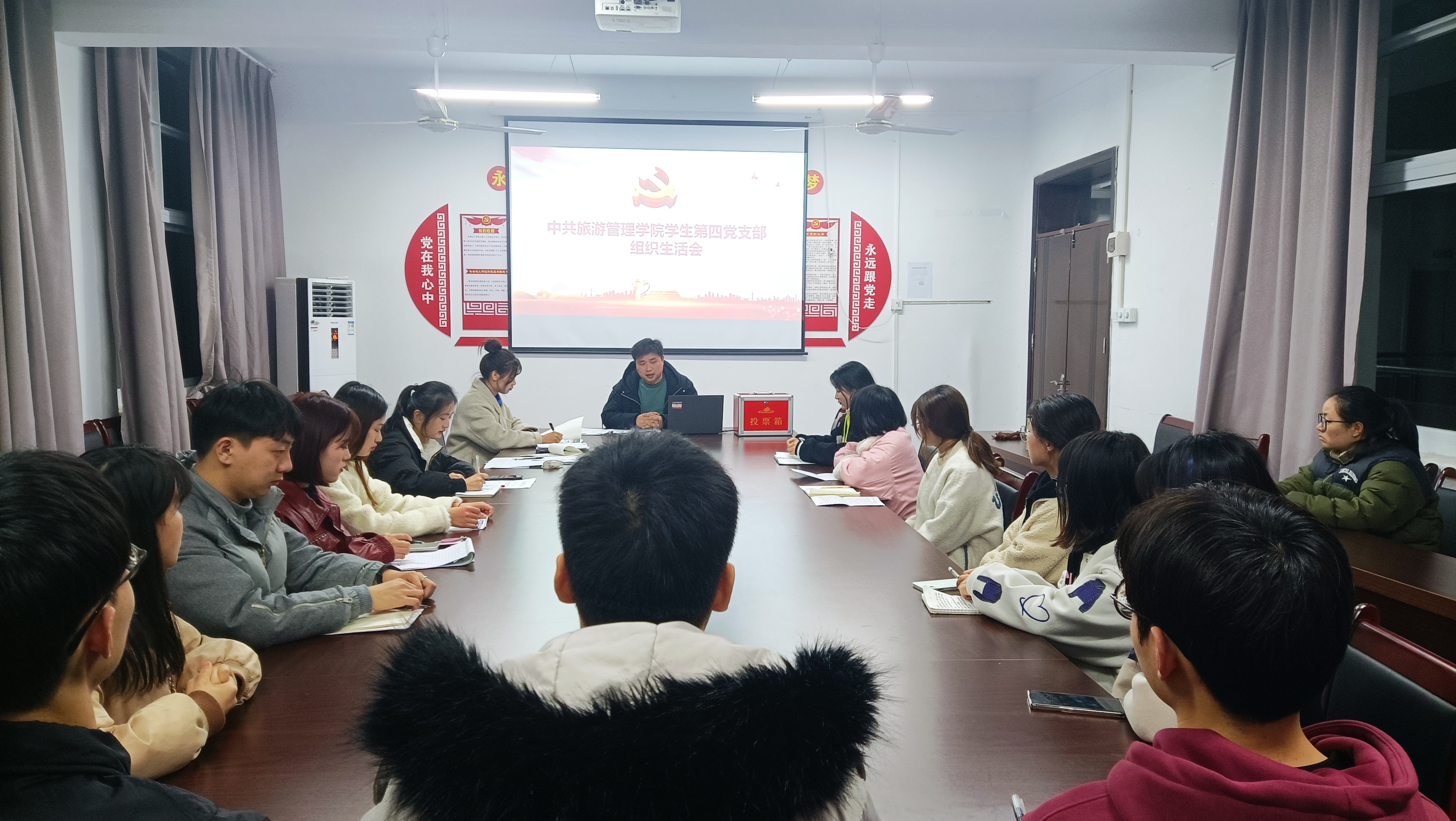 2月26日,旅游管理学院学生第四党支部在明德楼北201会议室开展2月份主题党日活动,并进行2022年组织生活会及民主评议党员,活动由支部书记黄维兵主持。