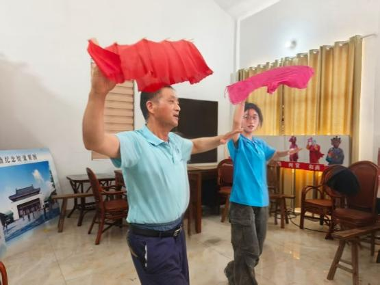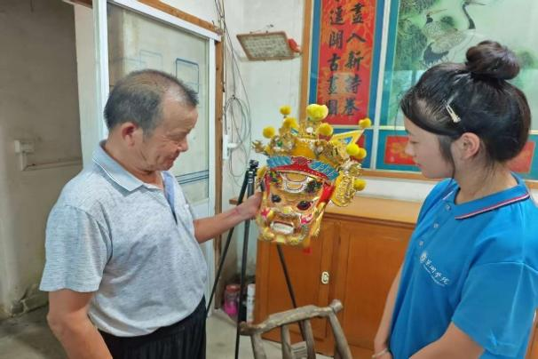 7月2日,实践团抵达郎溪县后,首站来到五倡馆,拜访国家级非遗传承人周国平。作为梅渚镇最具代表性的传统民俗舞蹈,跳五猖融合了傩文化、祭祀文化等多元元素,承载着深厚的历史记忆。周国平向团队成员详细介绍了跳五猖的起源、发展及文化内涵,并现场表演了五猖戏中的角色,其刚劲灵动的动作赢得阵阵掌声。