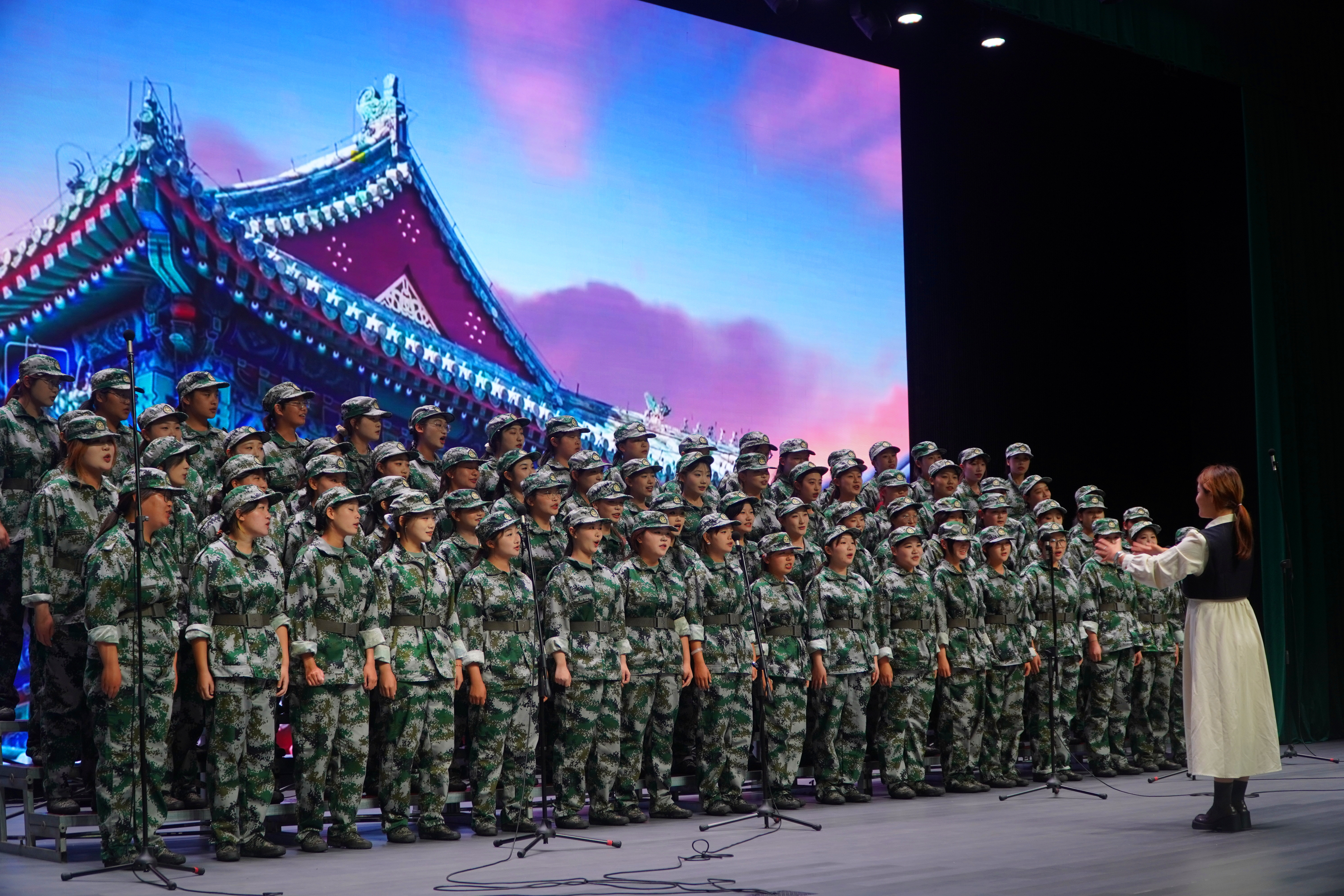 比赛现场,10支连队依次登台亮相,用真挚歌声编织起一张跨越时空的红色记忆网,每一曲都承载着青年学子的赤子之心。《我和我的祖国》《我的祖国》《国家》分别以个人情感与家国大义的视角,抒发“家国同心”的情怀,婉转的歌声中满是对祖国的深情依恋;《长城谣》深沉悠扬的曲调缓缓唤醒民族抗争的集体记忆,字里行间皆是对祖国山河的赤诚守护与对民族精神的深切传承;《歌唱祖国》鼓手与合唱的精妙呼应让旋律愈发昂扬振奋,磅礴气势感染着在场每一位观众;《强军战歌》节奏铿锵、斗志昂扬,歌声中饱含新时代青年对国防力量的崇高敬仰,更传递出投身报国、守护家国的坚定决心;《保卫黄河》则以排山倒海之势震撼全场,激昂旋律生动再现抗日烽火中的民族豪情,将比赛氛围推向最高潮。