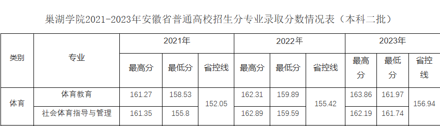 巢湖学院2021-2023年安徽省普通高校招生分专业录取分数情况表(本科二批)
