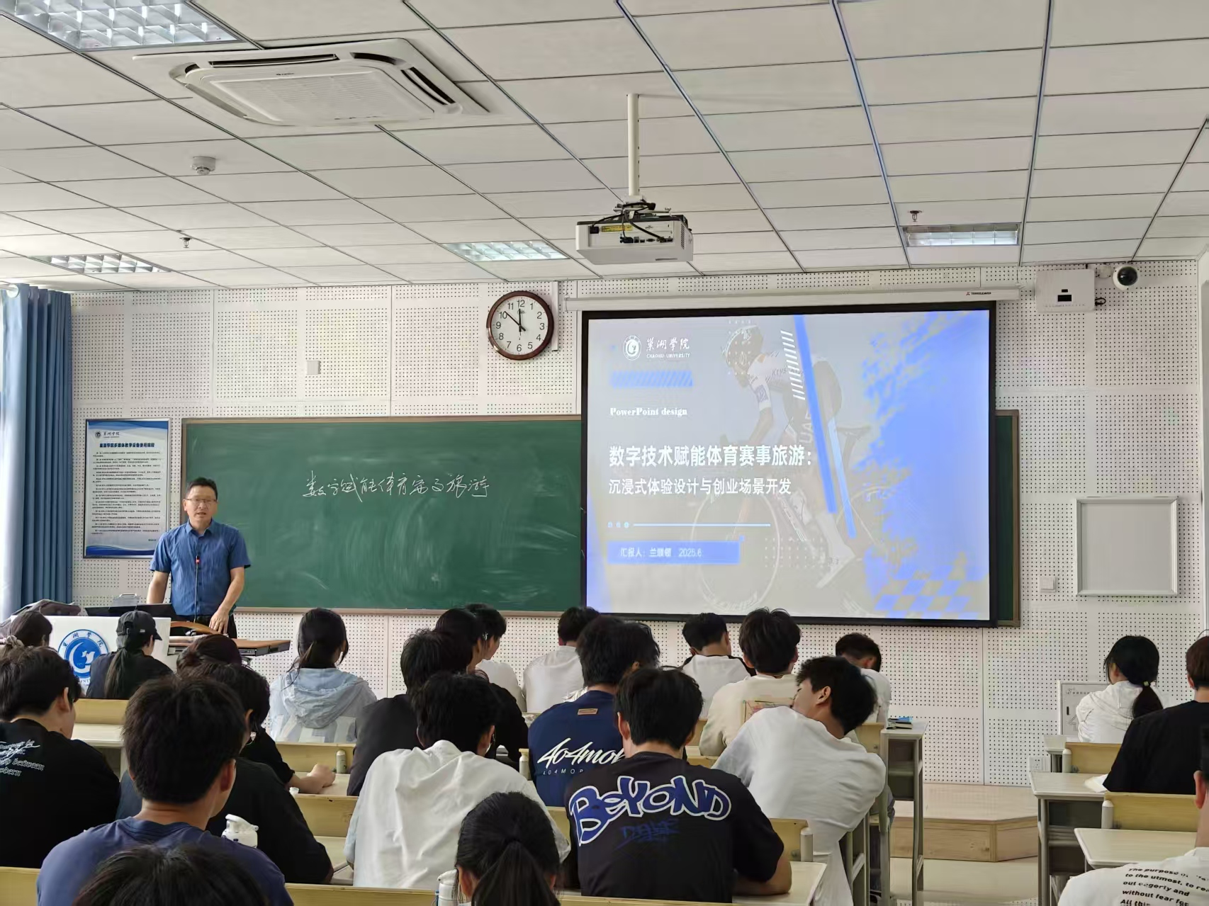 为提升跨学科学术素养,激发大学生创新创业思维,在6月4日崇学楼中402教室,体育学院兰顺领教授为体育学院与旅游管理学院学生举办了题为《数字技术赋能体育赛事旅游:沉浸式体验设计与创业场景开发》的学术讲座。