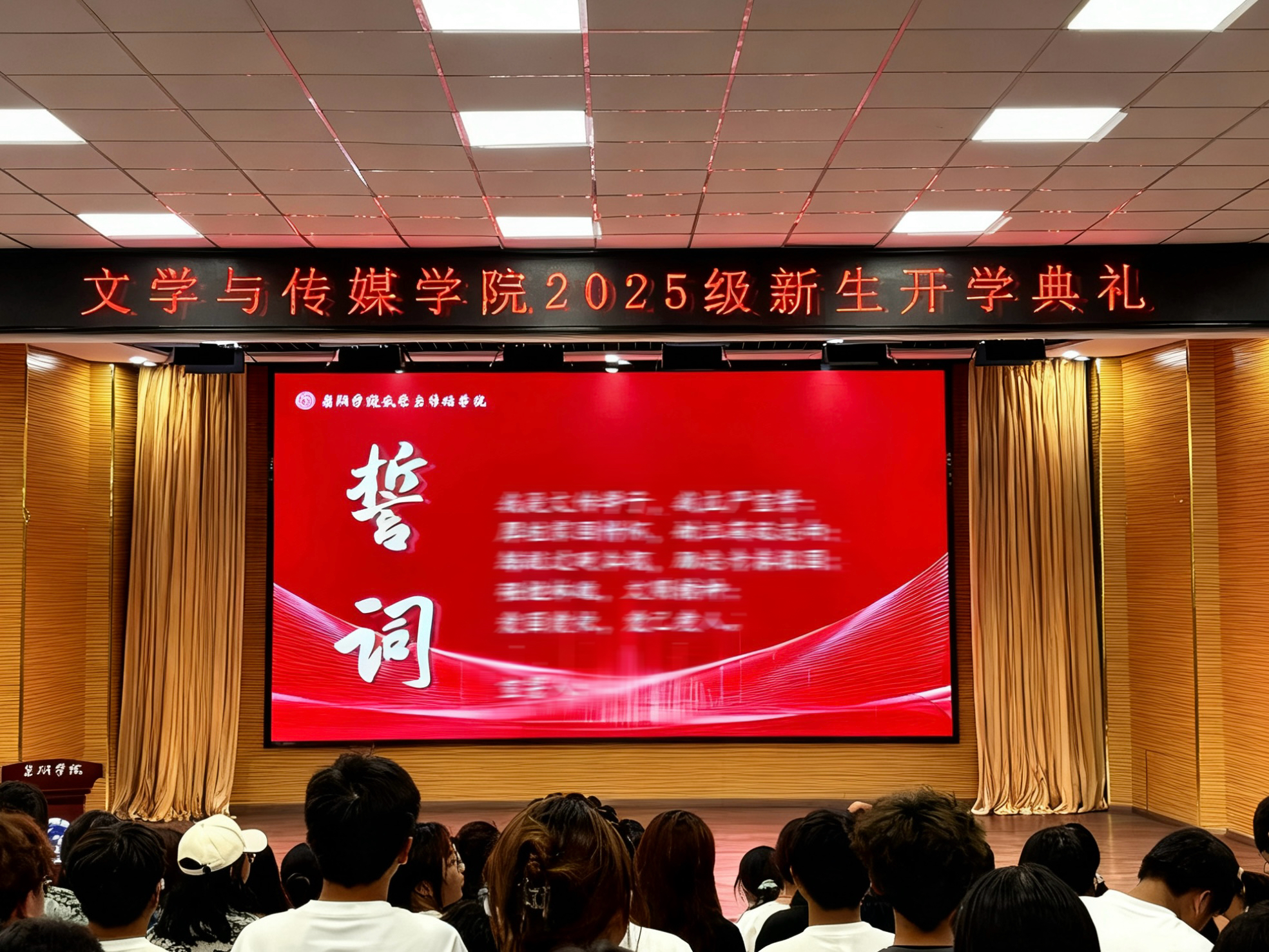 文学与传媒学院2025级新生开学典礼在庄严的国歌声中正式拉开帷幕。