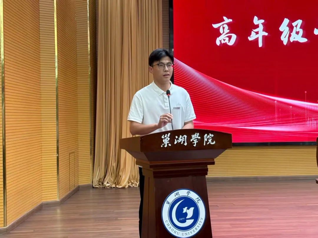 2025级汉语言文学专业王欣宇代表新生发言,表达了对自己大学生活的憧憬与规划。她表示将尽快适应新环境,专注学业、投身实践、持续进步,与同学们共同成长,努力成为有理想、有本领、有担当的巢院人。