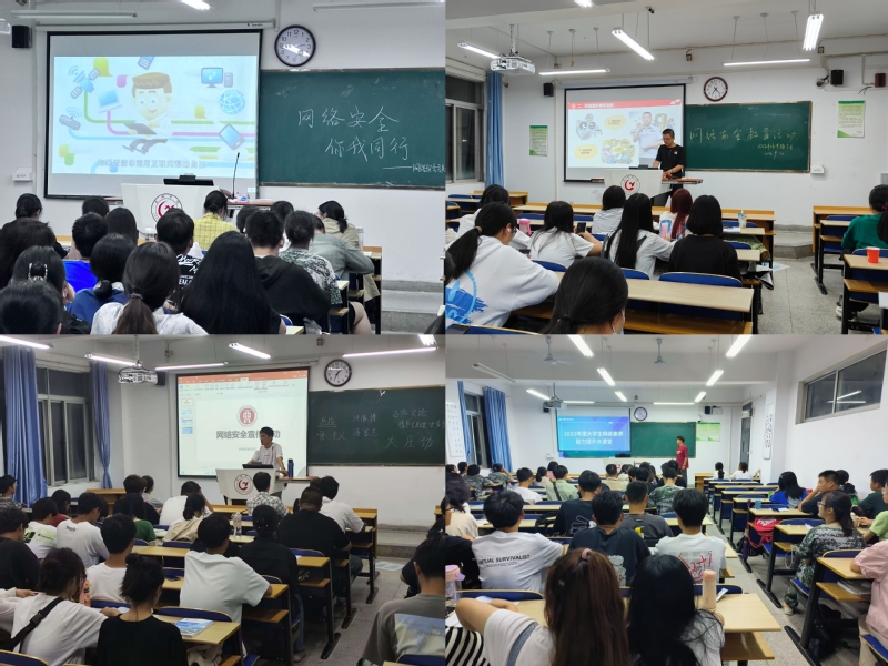 9月12日校园日当天,宣传部联合学生社团在校园开展网络安全微访谈活动,了解广大师生的网络安全意识和能力,宣传普及网络安全相关知识,帮助师生树立正确的网络安全观。信息化处面向全校师生开展了“网络安全和个人信息保护”网络安全专题讲座。讲座从国家网络安全形势与政策法规、网络安全典型案例、个人信息保护等方面向师生普及网络安全常识,帮助其了解网络安全现状,并掌握基本的网络安全防护技能,全校300余名师生现场聆听讲座,活动反响热烈。各二级学院围绕国家网络安全宣传周主题,通过主题班会、主题党(团)日、教师网络安全教育会议、网络安全课、知识竞赛、反电诈知识培训等活动对师生进行全方位的网络安全教育。