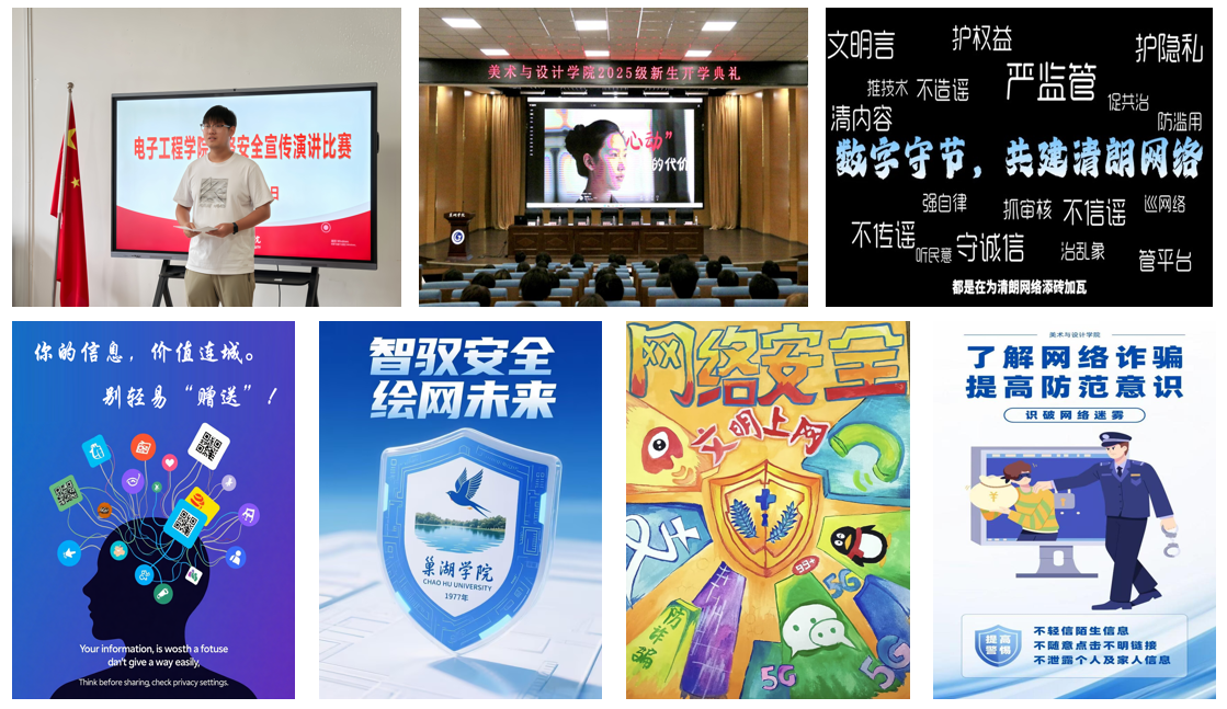 2025年国家网络安全宣传周于9月15日至21日在全国范围内举办。巢湖学院积极响应号召,紧扣“网络安全为人民,网络安全靠人民——以高水平安全守护高质量发展”主题,开展形式多样、内容丰富的宣传教育活动,全力普及网络安全知识,提升师生网络安全素养,致力于营造清朗的校园网络空间。
