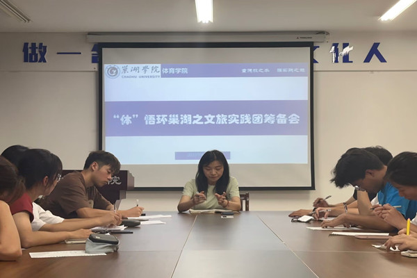 6月29日下午,校级暑期“三下乡”社会实践团队“体”悟环巢湖之文旅实践团在学院会议室召开筹备会,团队指导老师杜锐和全体团队成员参加会议,团队队员汪旭主持会议。