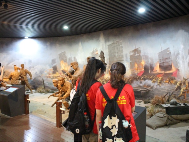 6月30日上午,团队成员共同前往合肥市包河区渡江战役纪念馆开启本次红色文化教育活动的第一站—渡江战役纪念馆。渡江战役纪念馆分为“战前形势”、“战役准备”、“突破江防”、“战役胜利”、“人民支前”和“英烈业绩”六个展厅,每个展厅均以实物、图片、文字和声、光、电等现代化手段,生动地再现了百万雄狮过大江的壮阔画面,让参观者深切的体会当时战争的惨烈以及人民英雄不畏艰辛、团结一致和敢于拼搏的精神,此战役也为后来解放全中国创下了良好的先决条件。在纪念馆内,团队成员不断感受着来自先辈们的无可匹敌的气势和勇往直前的精神。在震撼和敬仰中不知不觉走完了整个纪念馆,出馆后,团队成员通过问卷调查和采访的形式圆满完成本场的红色文化教育活动。
