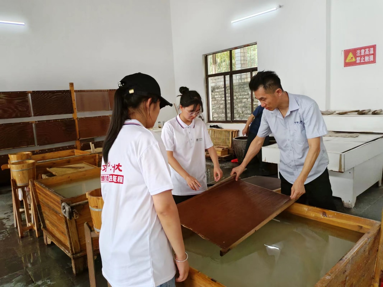 志愿者们认识到到宣纸能作为国家首批非物质文化遗产代表作,正是由于千百年来宣纸技艺依靠师徒之间言传身教,纯手工打造而成。