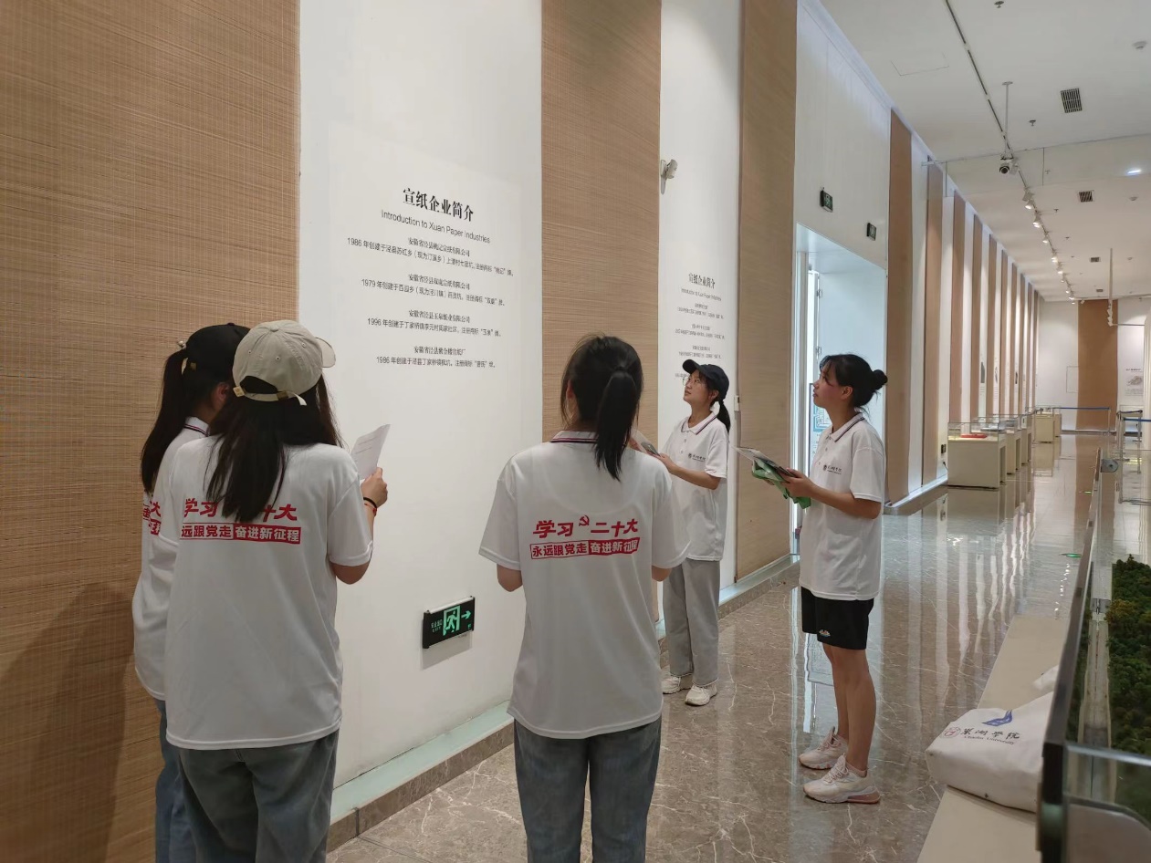 6月30日上午,志愿者们先是来到了泾县中国宣纸文化园进行参观调研。在宣纸文化园区工作人员的带领下,志愿者们深入了解到宣纸的品种、品质、历史源来以及其特殊的一百零八道制作工序。