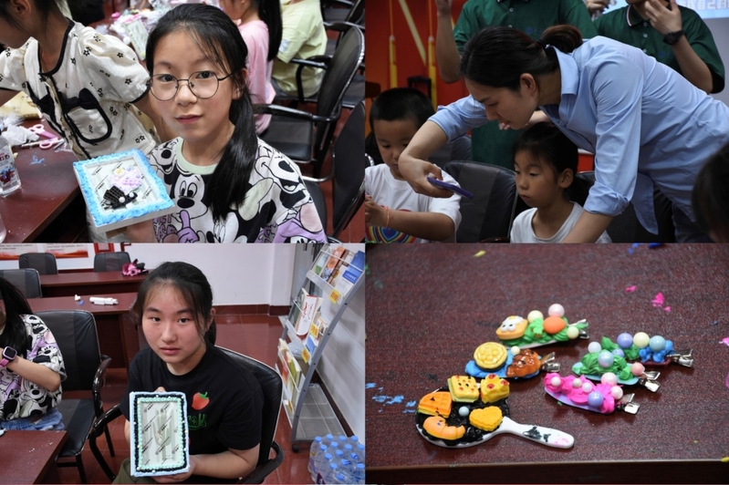 7月4日,实践团成员何凤带领小朋友们开展了手工疗愈系列活动之一——奶油胶。艺术疗愈作为一种心理治疗手段,通过对艺术的表达更直观地感受自己的内心。活动中,孩子们根据自己的喜好选择制作镜子、笔筒、相框等手工品。大家都积极活跃参加创作,耐心地挤着奶油胶,用色彩清新的奶油胶轻轻打底,发挥想象,缀上各种可爱的装饰小配件。大家在一起积极交流创意,互相展示自己的作品,实践团成员们也积极加入孩子们的创作中,活动现场气氛十分热烈。
