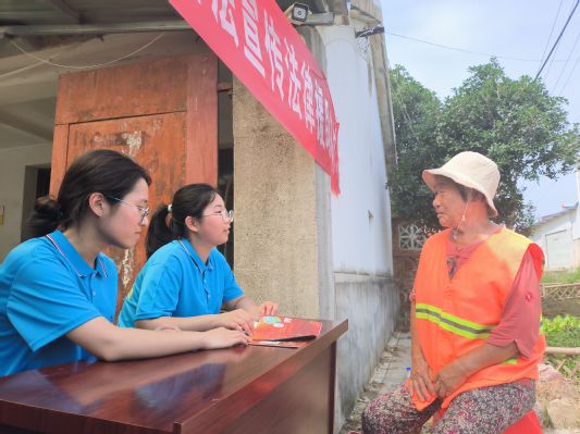为了增强普法效果,实践团在该村人流量最多的“美好超市”门口摆设了法律援助展台,通过发放特色宣传手册、表演相声等方式向村民进行普法宣传,解答村民提出的关于合法权益被侵害如何去调解维权等相关法律问题,为村民普及民法典、法律援助、禁毒、防范电信诈骗等与居民生产生活息息相关的法律知识,切实增强广大群众办事依法、遇事找法、解决问题用法、化解矛盾靠法的意识和能力。