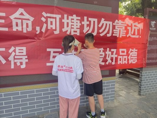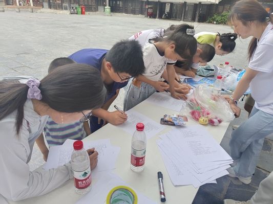 在三河古镇万年台,实践团以填写校园霸凌和安全自护问卷的方式,现场开展普法宣传,帮助小学生们树立法律意识和安全意识,培养法治思想、培育法治精神。实践团成员还向三河古镇的儿童发放“夏季防溺水”宣传单,有针对性地开展了防溺水安全教育小课堂活动,普及防溺水知识和相关自救措施,提高儿童自我保护意识。