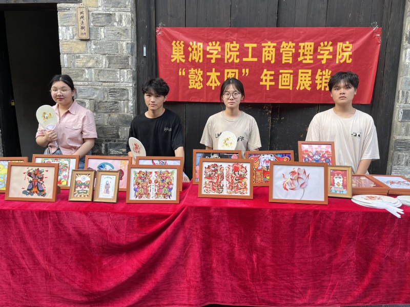 柘皋夏至民俗文化节由巢湖市文化和旅游局、巢湖市教育体育局主办。“云上夏至”将传统节庆与现代科技结合,以不同视角、形式展示夏至文化和巢北民俗魅力,让虚拟与现实共融共生,线上与线下一起发力,把柘皋古镇优秀民俗文化展现给广大群众,全方位展示巢北地区独具韵味的文化民俗,在这一背景下巢湖学院暑期三下乡“懿本图”年画传承实践团队,在柘皋古镇北闸老街进行年画展销,团队成员们在老师的指导下,发挥专业所长,查找关于年画资料结合实际需求,有针对性地自行策划、设计、执行完成此次夏至节展览展销。采用了许多创新方式,如live2D年画、年画故事分享等新颖的形式展现年画,从而赋予了传统年画全新的生命力。展销会上吸引众多顾客驻足观赏选购,活动期间河中鼓声咚咚,龙舟飞棹,竞赛表演,欢声雷动,一抹旗袍展绝代芳华,一袭汉服显千载风韵,旗袍汉服秀更是彰显女性风采,传统文化的魅力令夏至节人气更甚。