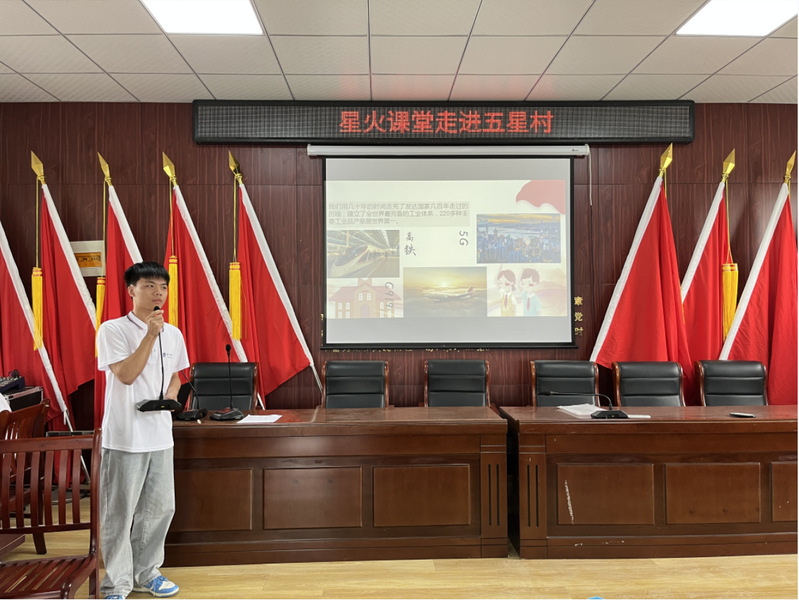 基于此,星火课堂实践团在柘皋镇五星村支教期间不断探索,依托环巢湖革命文化,立足于国家大势,结合自己所掌握的知识,把握青少年群体的成长规律,开展了课堂教学、理论宣讲、研学旅行等一系列丰富多样、生动活泼的思政小课堂,推进思政教学体系化、本土化、情感化、时代化。