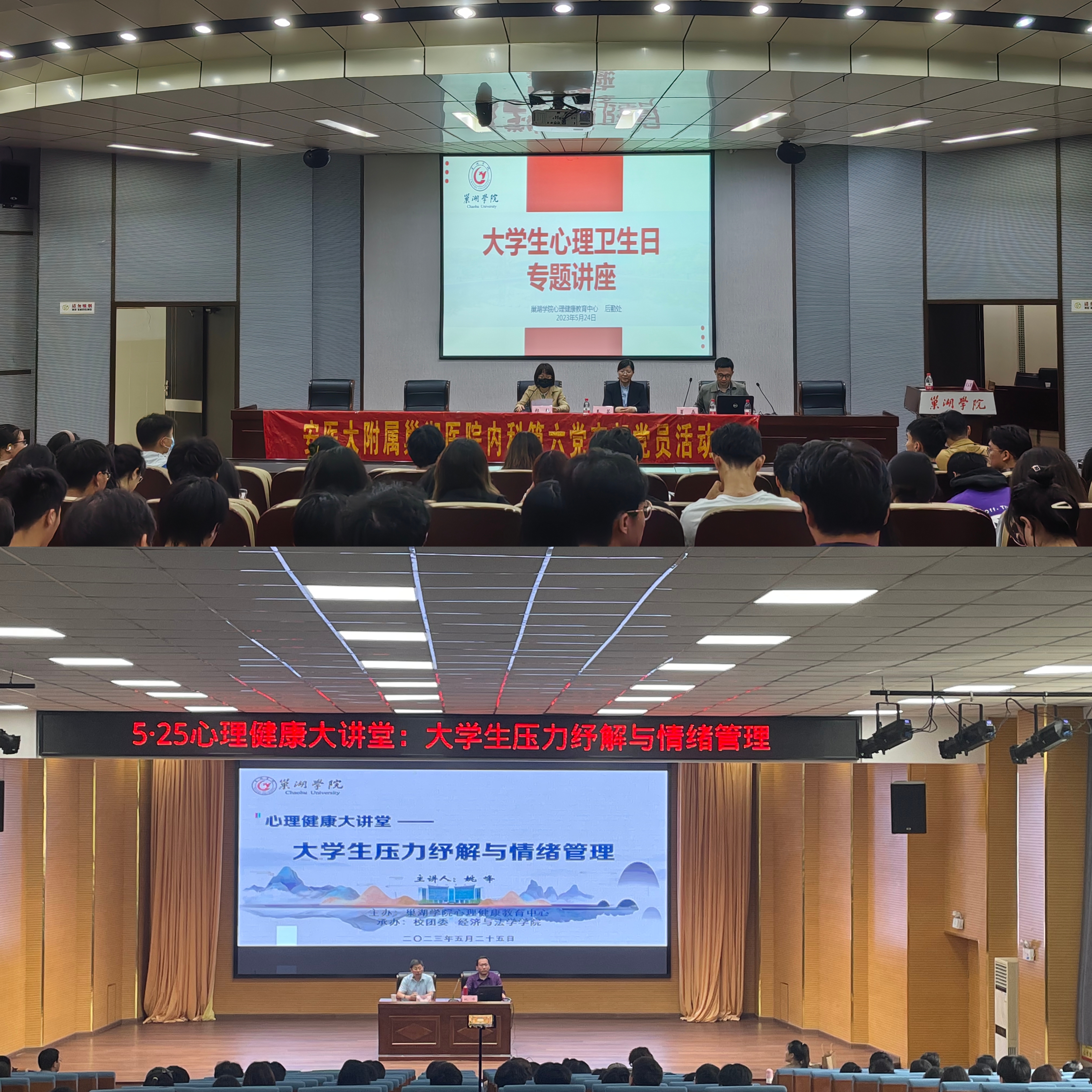 为深入贯彻落实党的二十大精神,贯彻落实党中央、国务院和省委、省政府及省委教育工委省教育厅关于大学生心理健康工作决策部署和工作要求,落实教育部等十七部门联合印发的《全面加强和改进新时代学生心理健康工作专项行动计划(2023—2025年)》,扎实推进学校心理健康教育工作,5月24-25日,巢湖学院特邀安徽医科大学附属巢湖医院儿童青少年心理门诊负责人夏磊博士、安徽警官职业学院警察系副主任姚峰教授分别作《青少年常见精神障碍及心理治疗》、《大学生压力纾解与情绪管理》心理健康教育专题讲座。现场向同学们传授心理健康专业知识,培育学生自尊自信、理性平和、积极向上的健康心态,营造“助人、自助、互助”的良好氛围。