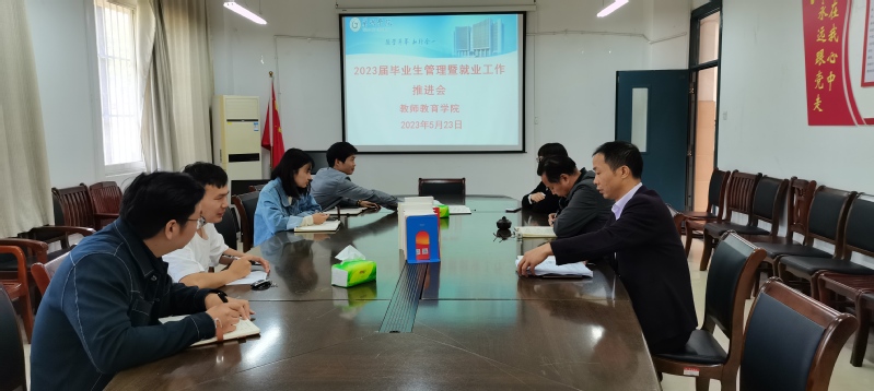 为深入学习贯彻习近平新时代中国特色社会主义思想主题教育,切实做好毕业生教育管理与服务工作,全力促进毕业生顺利毕业就业。5月23日上午,教师教育学院召开2023届毕业生管理暨就业工作推进会。学院党委书记朱玉票、副书记左劲中、副院长郑艳、全体辅导员参加会议。会议由左劲中主持。