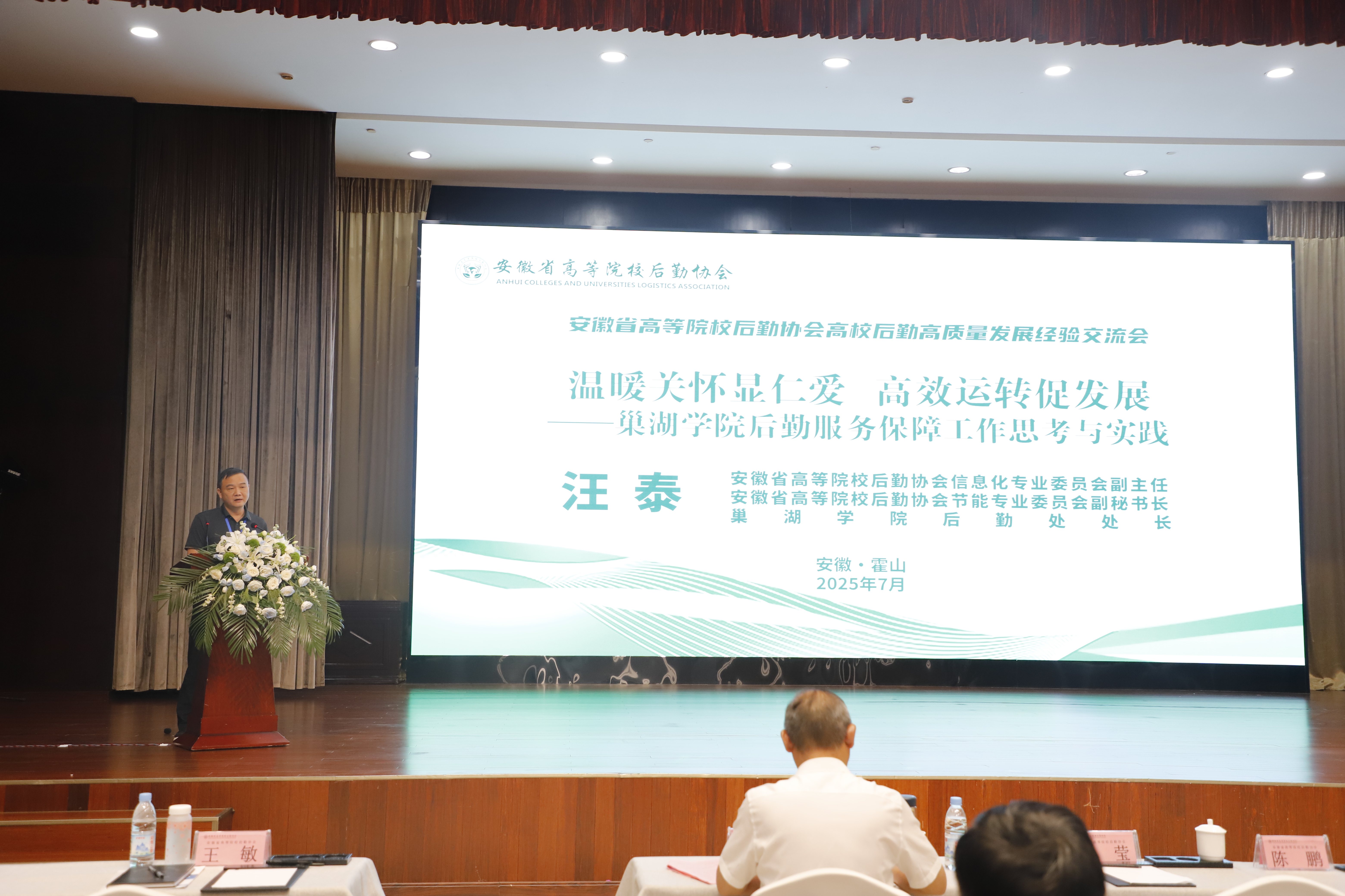 校后勤处处长汪泰在大会上作了题为《温暖关怀显仁爱 高效运转促发展》的交流发言。汪泰结合高校后勤服务高质量发展的政策要求,从建设“有爱、有心、有力”后勤保障体系的三个维度出发,围绕我校在公寓建设、餐饮服务、环境育人、医疗救助、爱心帮扶等方面的探索实践,与省内高校同仁分享巢院经验。(文/朱寒冰 图/陈浩 初审/李季纲 终审/汪泰)