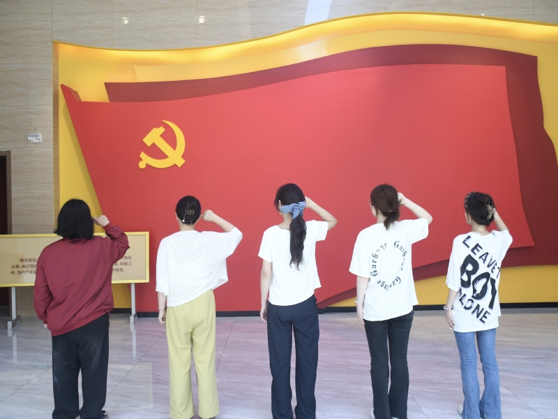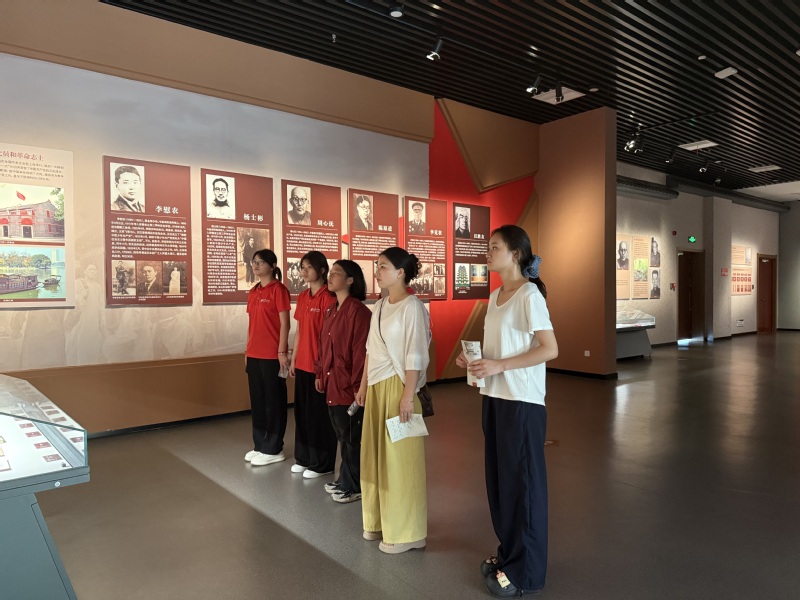 进入博物馆后,在讲解员带领下走进这座蕴藏着深厚历史文化底蕴的博物馆,亲身感受巢湖地区悠久的历史和灿烂的文化,讲解员带领团队成员依次参观了博物馆的各个展厅,队员们认识了巢湖从古至今的文化发展,队员们认真学习巢湖红色发展历史。在陈原道,李慰农、李克农等英烈的革命生涯中,感受他们不屈不挠的毅力和顽强斗争的精神。学习巢湖在支持鄂豫皖苏区的反“围剿”斗争、蒋家河口战斗、渡江战役斗争的人物事迹,感受巢湖人民为解放战争而做的不懈努力。随后,学生党员怀着对革命烈士们无比敬意和无限哀思,向革命烈士敬献电子花。活动结束之际,团队中党员同志来到党旗前,面向党旗举起右拳重温入党誓词,回忆入党初心,坚定目标使命。